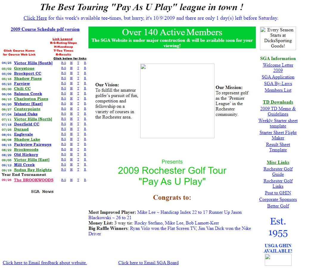 2008 – OG Website [136 Members]Mitch Swisky and JLaBelle created the first SaturdayGolfAssoc.org on a laptop